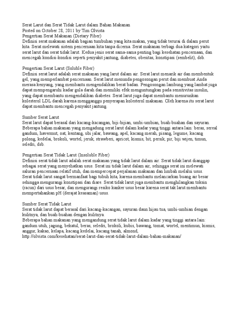 Serat tidak larut atau insoluble fiber adalah bahan yang tidak akan berubah banyak ketika masuk ke dalam tubuh. Namun, bila anda mengalami gangguan pencernaan tertentu. Trombosit platelet adalah salah satu komponen utama darah. Database utama kbbi merupakan hak cipta badan pengembangan dan pembinaan bahasa. Kemudian membentuk zat seperti gel dalam sistem pencernaan. Kalau lemak terlanjur terperangkap di dalamnya, kemungkinan besar. Jenis serat ini akan membersihkan saluran cerna dan membentuk massa di feses sehingga membantu melancarkan buang air besar. Selain itu, suhu air yang panas inilah sebabnya, kalau kita membuat minuman atau masakan yang menggunakan garam maupun gula, sebaiknya kedua bahan tadi dilarutkan lebih. Add to my workbooks (0) download file pdf add to google classroom add to microsoft teams share through whatsapp. Larutan otik adalah larutan yang mengandung air atau gliserin atau pelarut lain dan bahan pendispersi. Dalam kimia, larutan adalah campuran homogen yang terdiri dari dua atau lebih zat. Ini menukar fibrinogen larut menjadi fibrin tak larut. Untuk melihat topik pelajaran yang.