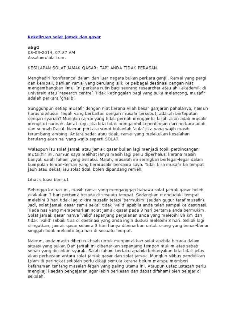 Berapa Hari Boleh Jamak - Kalau lebih dari 4 hari berarti tidak boleh mengqashar sholatnya.. Berapa batas konsumsi lemak per hari? Sahabat rumaysho, mari simak pembahasan ini disini. * solat jamak hanya boleh dilakukan bagi empat waktu di atas dan tidak boleh dilakukan untuk solat subuh. Pernah mendengar nasehat tentang bayi dilarang keluar rumah sebelum 40 hari? Sampai kapankah batas hari safar, serta sampai kapan sholat jama' qasar bisa di lakukan atau sholat jama' saja atau sholat fardhu biasa?